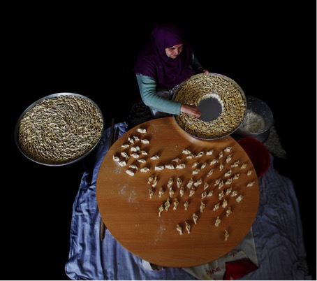 A number of Turkish culinary specialties have a world-wide reputation, one of which of course is lokum, or Turkish delight as it is better known. Made of sugar syrup which is boiled with starch, hazelnuts, pistachios, mint or rose water are added to it. One of the most famous Turkish desserts is undoubtedly baklava (honey and nut pastry). Other sweet specialties include pastes of almonds, pistachios and coconut. The roasted pistachio is a favourite snack and is also used in several dishes and sweets. Turkish coffee is also world-renowned. Its preparation is quite different from other coffees. The coffee grounds are first stirred into cold water in a pot with a handle and then boiled until it foams. The foam is then poured into the cup and the coffee boiled once again. The coffee grounds left in the bottom of the cup are undrinkable and often used for fortune telling by Turkish women who can be very proficient at scrutinizing the pattern left by the coffee grounds for hidden meaning. Another Turkish specialty is undoubtedly the Turkish simit (bagel). The simit is a sesame seed-covered bread ring, available any time and everywhere from street peddlers to street corners. Turks like to start the day with a freshly baked simit and a cup of Turkish tea which is prepared by using a double-tiered tea pot.